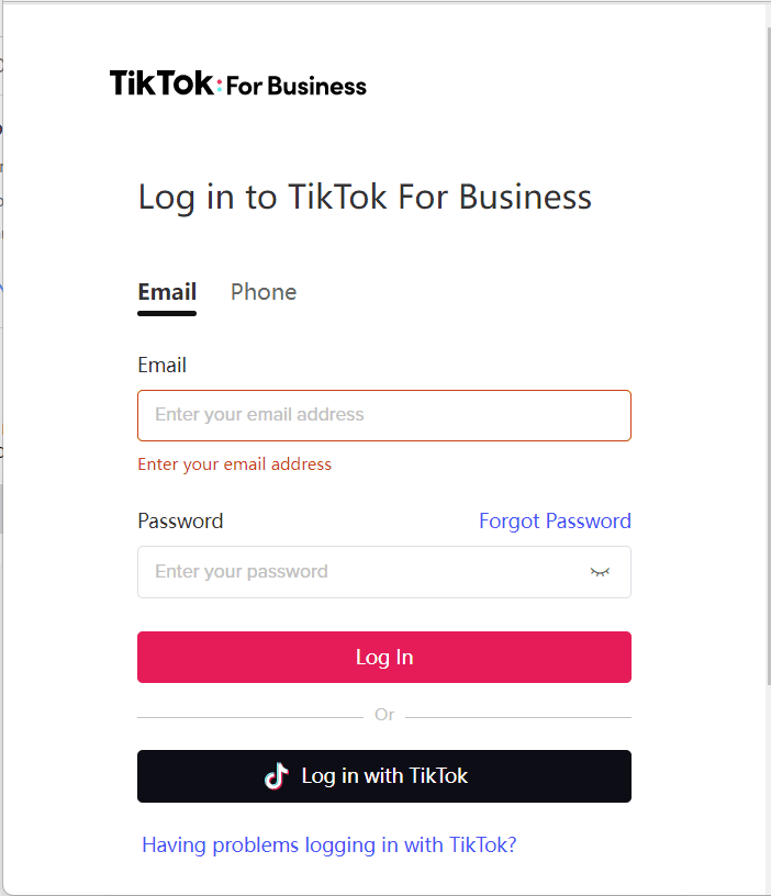 - Sign in using the TikTok Ads account with admin permissions for the ads you want to connect.
