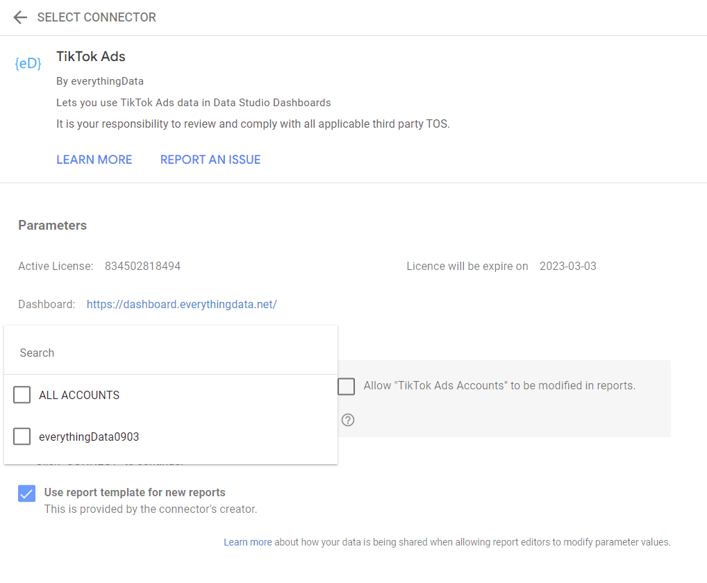 - Choose the specific ad accounts you want to integrate with EverythingData, which is especially useful if you manage multiple TikTok Ads accounts.