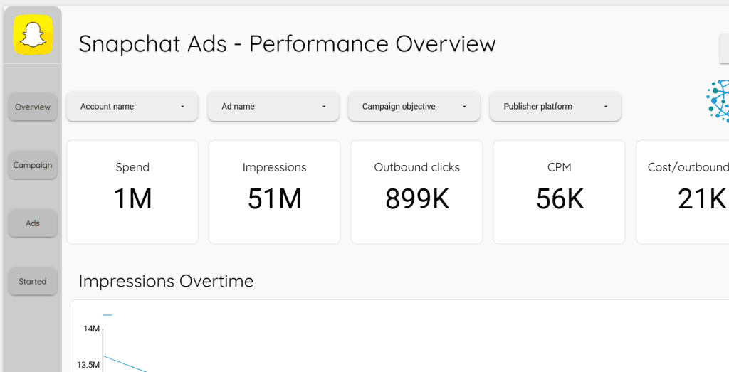 Our EverythingData Snapchat Connector Template in Google Looker Studio will simplify and optimize your Snapchat Ad Data management and analysis experience. Using our Snapchat Connector will optimize your advertising strategy in the following ways: